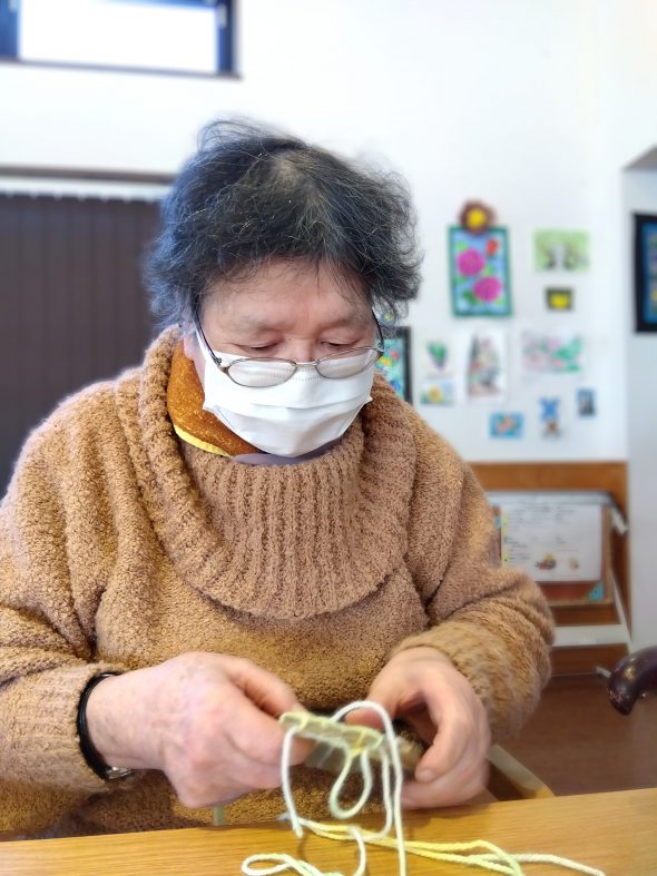 当施設デイケアでは、体操、リハビリはもちろんの事、寒さで手先が動かしにくくなる予防対策として写真のような作業に取り組んでいます。(一部をご紹介します)