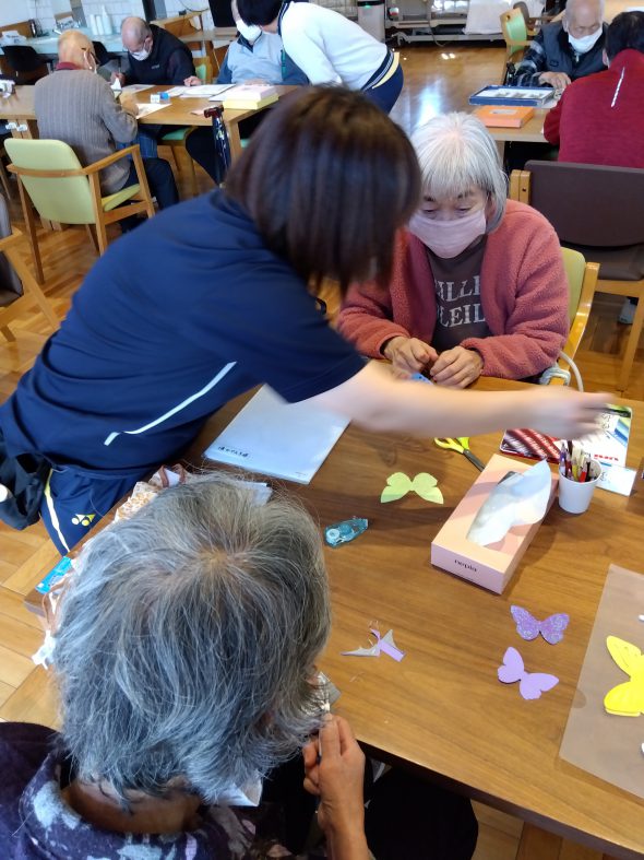 折り紙で花を作ったり、毛糸で手袋を作ったりと様々なことに取り組んでおります。